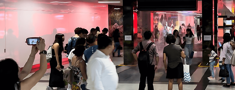 The line covers 27 MRT stations with digital screens, static panels and in-train formats across concourse and platform areas. TEL is practical for campaigns that need steady reach across residential neighbourhoods, retail zones and business districts.
